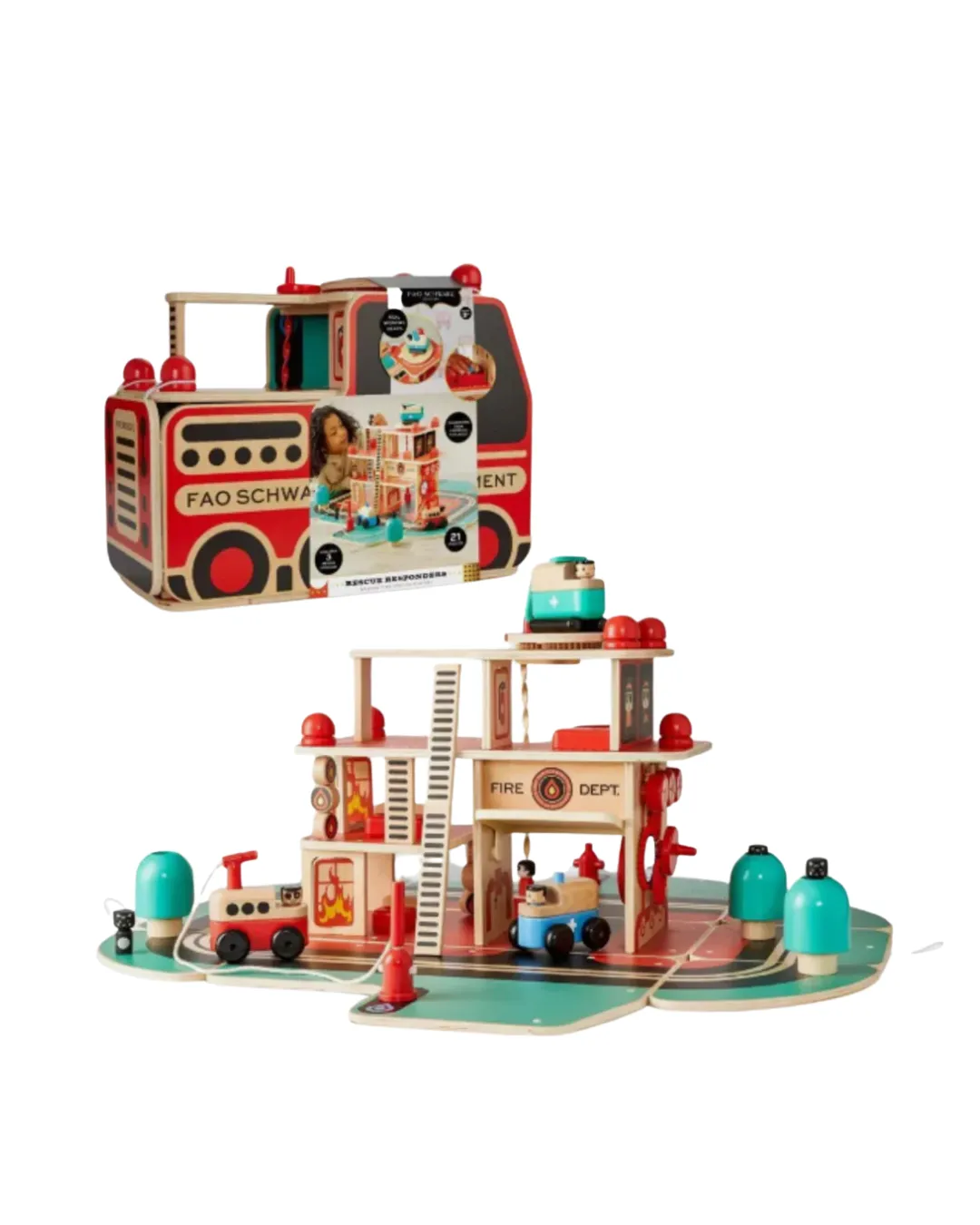 FAO Schwarz Rescue Responders Wooden Fire Station Playset